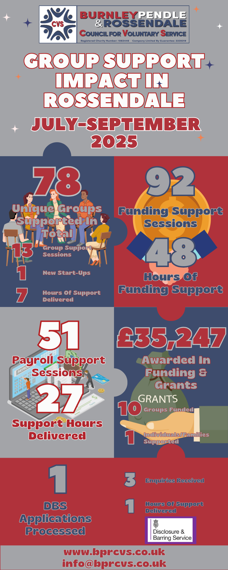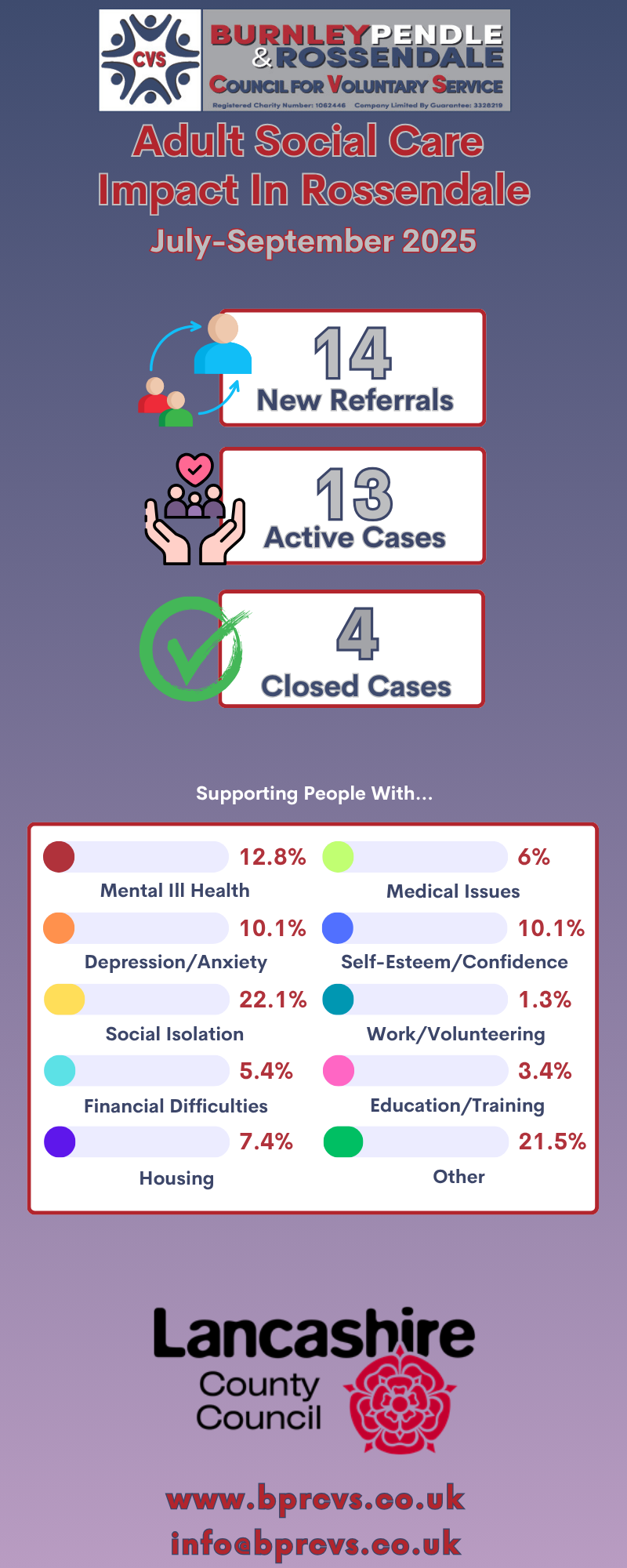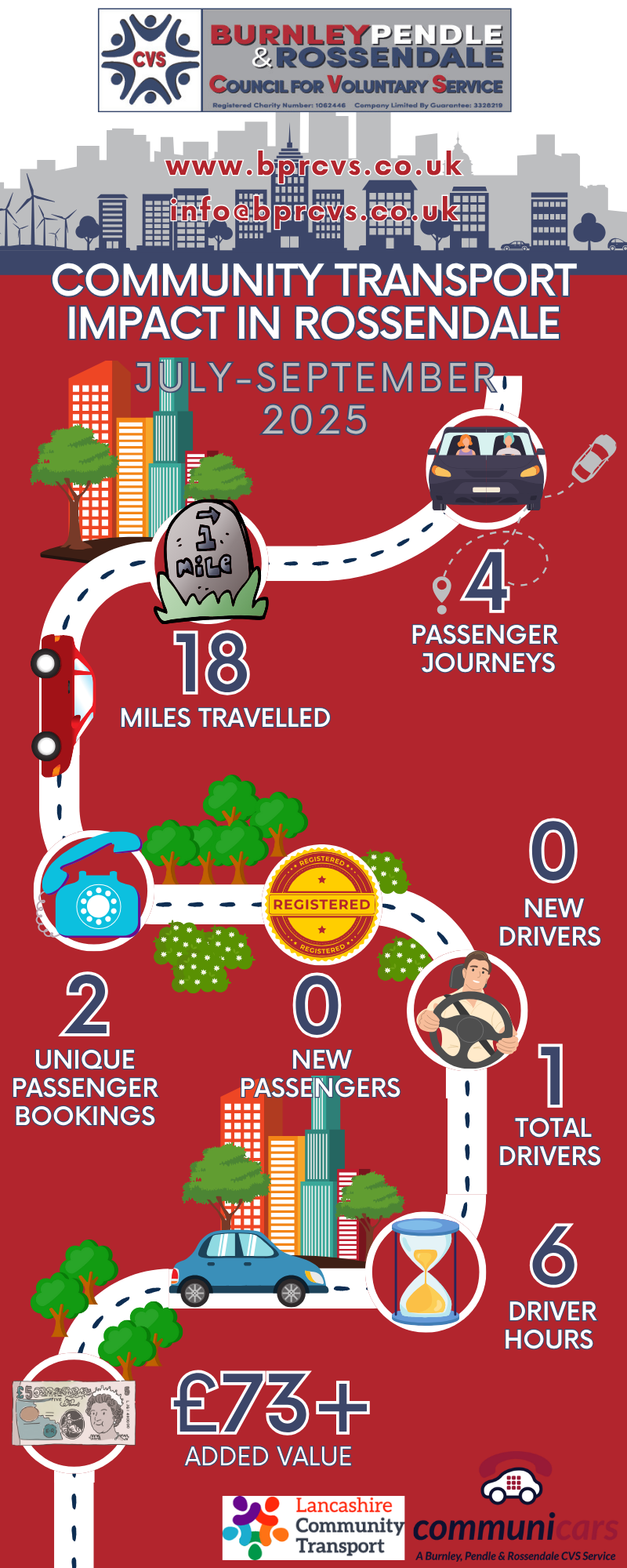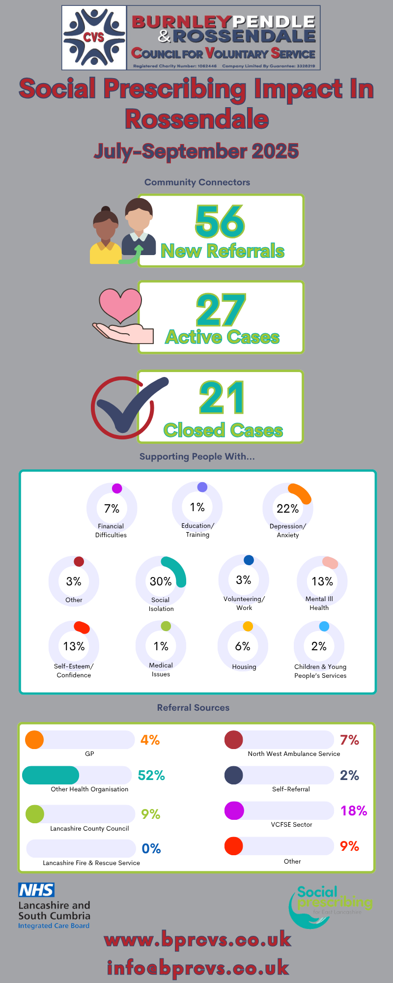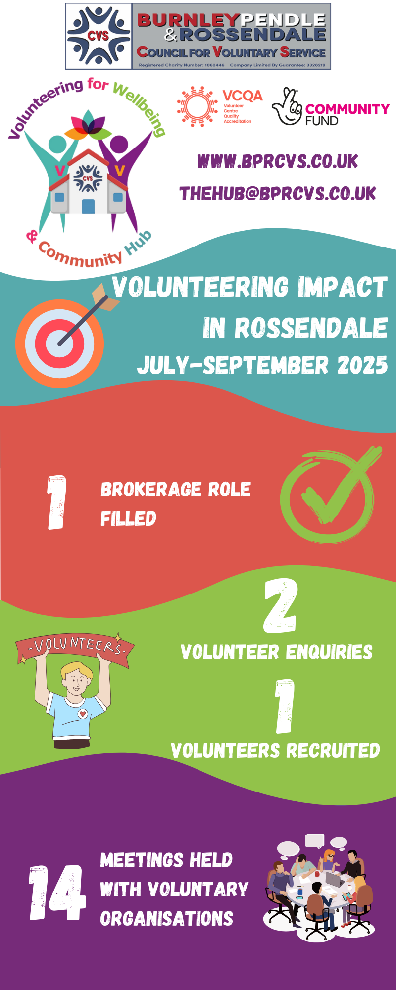 Check out the impact BPRCVS has had throughout Rossendale with our latest quarterly impact report exclusively covering the Rossendale locality for the quarter of July to September 2025.